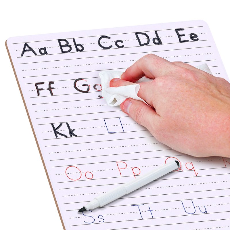 - 🌏 REUSABLE ALPHABET TRACING BOARD: Our small white board with lines for handwriting practice for kids features a write and wipe surface, which means your kids can wipe away their writings with a damp cloth in seconds and use it over and over.