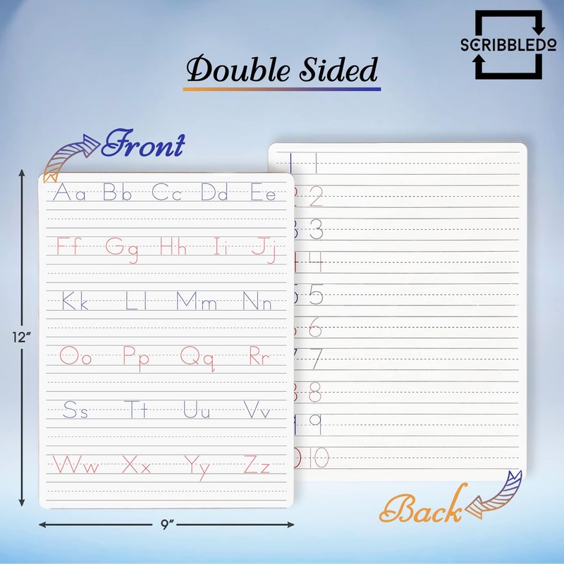 Scribbledo Dry Erase Handwriting Practice for Kids 9 x 12 inch Alphabet Tracing Board Whiteboard Letter Tracing for Kids Ages 3-5 Write and Wipe Alphabet Practice Cards Letters Writing Board
