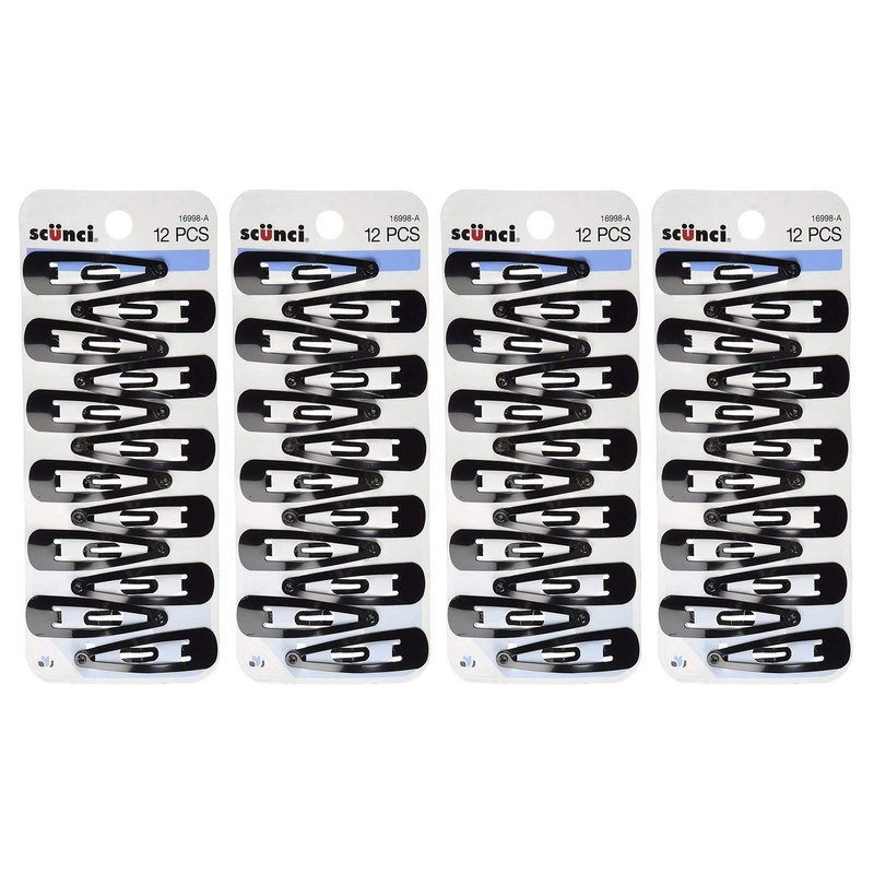 Scunci Countour, Snap Hair Clips, Black, 12 Count (4-Pack)