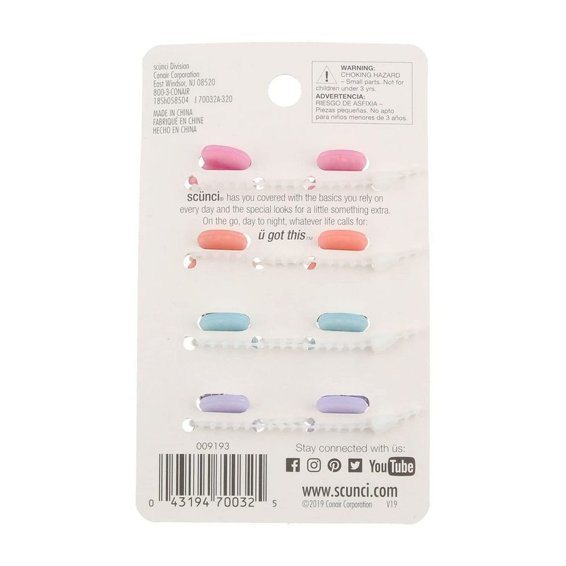 Scunci Mini Hair Jaw Clips, Assorted Colors, 8-Pieces
