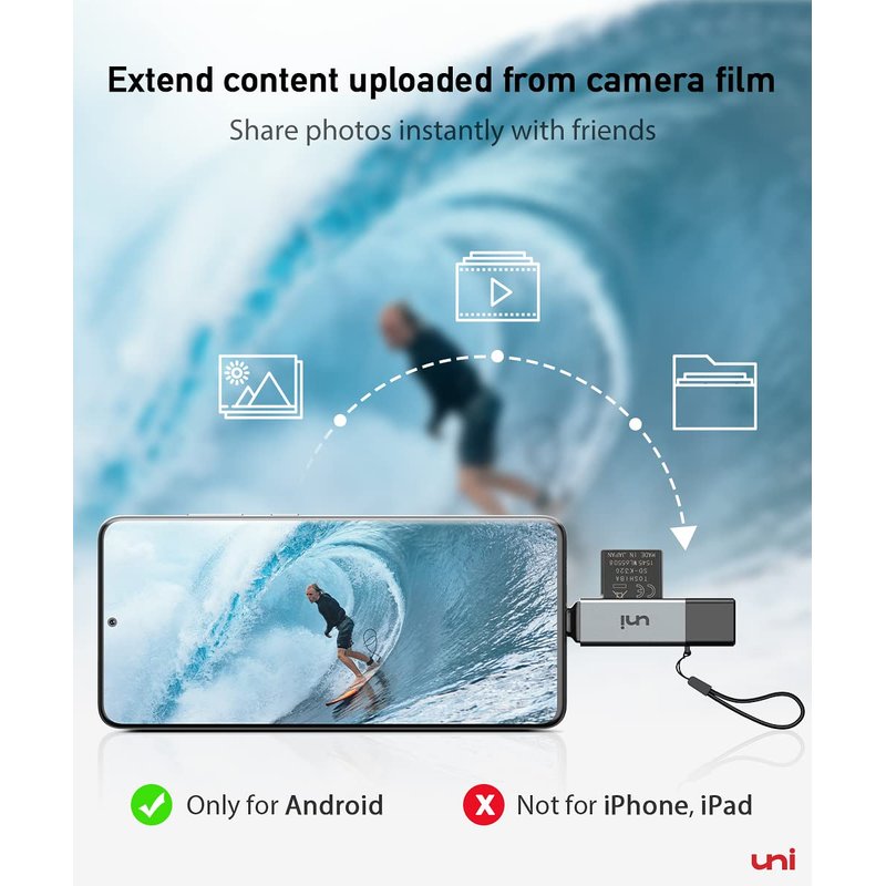 - 【No Camera Software Required】uni high speed Memory Card Reader connects directly to your Android phone's USB-C port, allowing you to instantly view your footage and manage photo videos without the need for additional apps or Wi-Fi connections. Share your experiences in real-time and never miss an exciting moment again! uni Micro SD USB Adapter with 24/7 customer service and hassle-free 18-month warranty. Please rest assured we stand behind our products and customers.