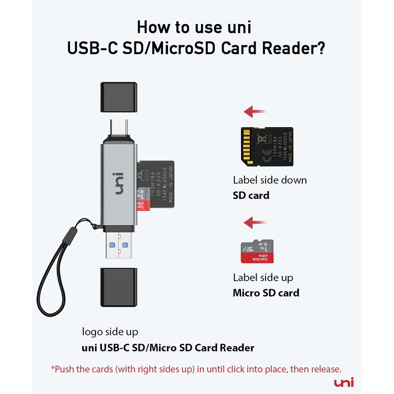 - 【Plug and Play】uni Card Reader for camera memory card has handy covers at both ends to keep out liquid and dust. Its slim profile makes it easy to store in your camera bag or backpack, and the useful cord keeps it from getting lost and provides convenient access to micro/SD cards when needed. No driver is required in Windows 11/10/8/7/Vista or Mac OS X 10.2 and later. No additional power supply is required.
