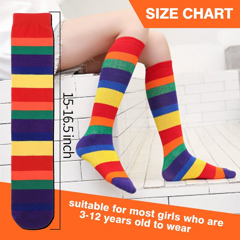 - SIZE - Length- girls cotton socks are approximately 15-16.5 Inch, suitable for most girls who are 3-12 years old to wear. it is stretchable, simple, durable and machine washable.