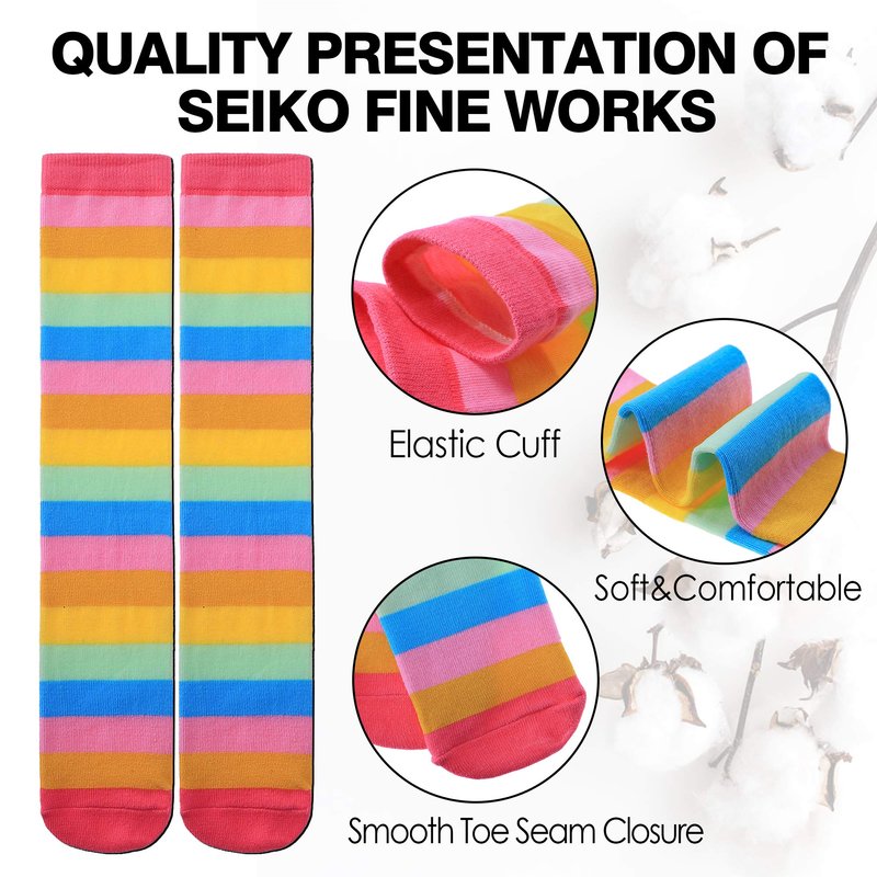 MATERIAL- These unisex socks are made from soft, long-lasting combed cotton;Cute Art Cartoon pattern high knee girls socks keep your girls warm with fashion look ,stereoscopic design is very fashionable and attractive.They are elastic and comfortable make it suitable for your feet,no slip down crew dress socks.