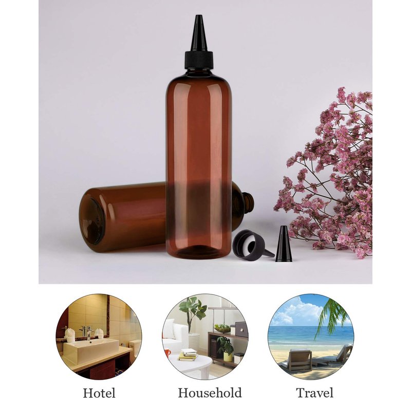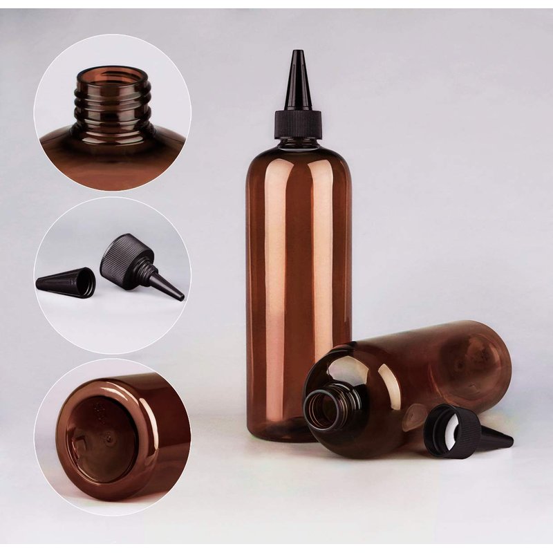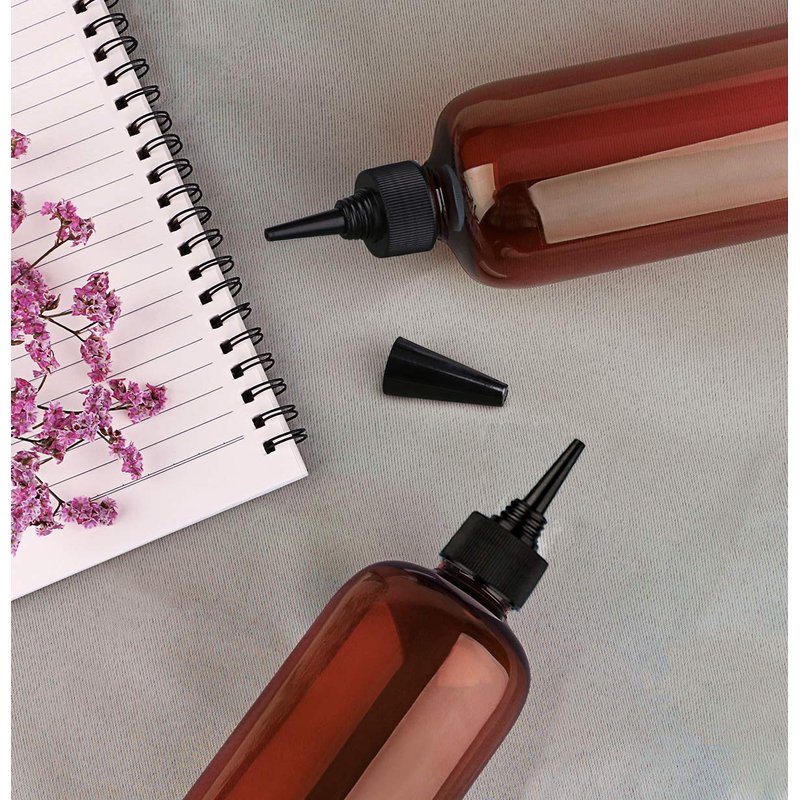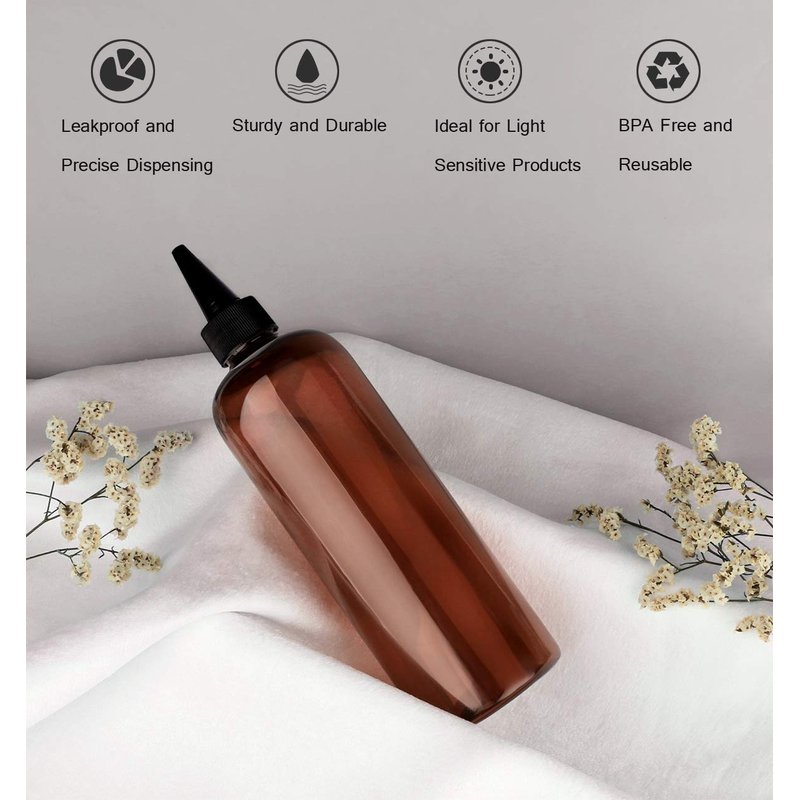 sdoot Amber Squeeze Bottle Hair Color Bottle Applicator Bottle 16 ounce for Hair, PET Plastic Refillable Bottles with Twist Top Cap-2 Pack, Brown