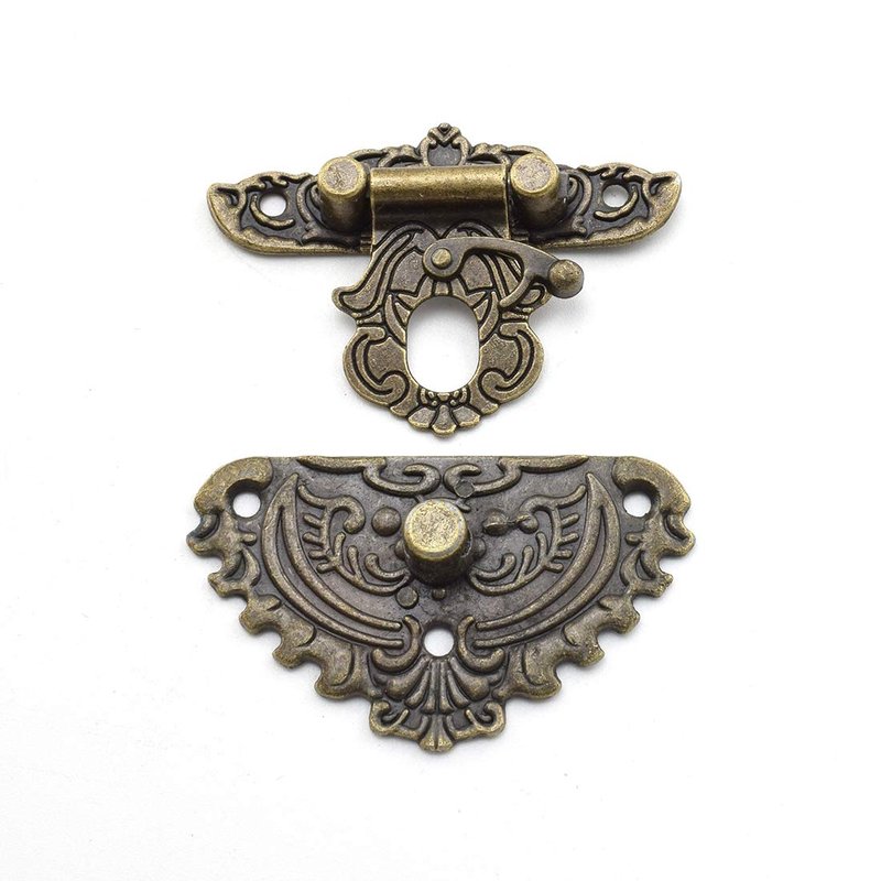 Antique Jewelry Box Hardware Kit includes latch hasp, hinges and corner protecters, which is easy to install and decorate your furniture box / cabinet / suitcase etc.