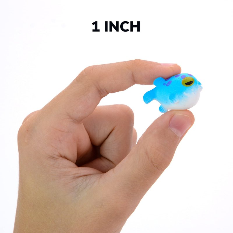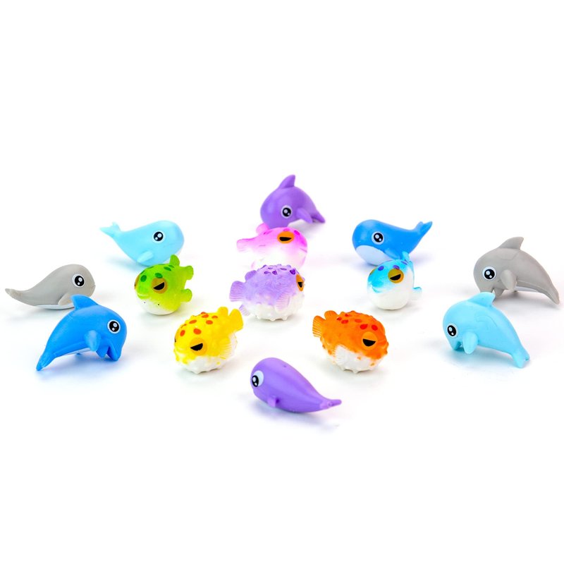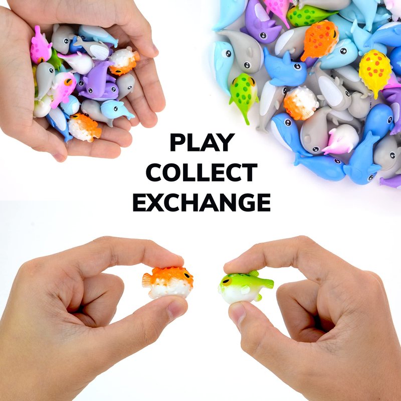 The bulk kids toys package includes 25 pcs of mini toys for boys and girls.Squishies pack of 25 includes 10 different sea animals: 6 different colors and styles of puffer fish, 3 different colors and styles of whales, and a blue dolphin.Sea mini toys are great pinata filler, popular goodie bag stuffers, and easter egg fillers. You can also use these kids party favors pack of squishies as treasure box toys for the classroom or in prizes for kids classroom giveaway.Bulk squishy toys are well regarded as party favor toys of choice, bulk treasure chest toys, and pinata stuffer novelty toys. 25 pcs of these bulk gifts for kids are more than enough as birthday favors small prizes, kids treasure box prizes, and pinata toy filler kid prizes. Choose a squishy fishy if you aren't sure what prize box toys for kids to get - cute animal toys would not let you down.Looking for vending machine toys? 25 pcs of these ocean anymals toys are a great vending machine refill. These bulk small toys fit in 2 inch capsules - a great choice for vendors of capsule vending machines. When children see a bright toy inside capsules, they are eager to get it as soon as possible. The package includes 10 different squeeze toys and kids want to have them all.Please, tell children not to put a squishy toy in their mouth. Our sea creatures are great Easter toys. Looking for Easter baskets for kids? By purchasing sea animals mini toys for Kids you can easily use them as Easter toys for kids and give joy and fun to your kids.
