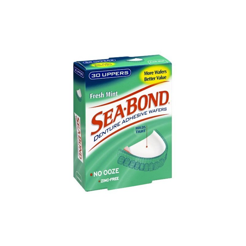 SEA-BOND Denture Adhesive Seals Uppers Fresh Mint, 30 Each (Pack of 8)
