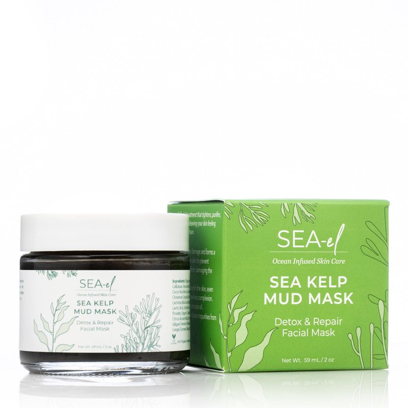 Sea-el Sea Kelp Mud Face Mask Skincare Activated Charcoal & Bentonite Clay Detox & Repair Facial Mask Calming Hydration Boost - Turmeric & Aloe Daily Glow Essentials for Women & Men - 2oz
