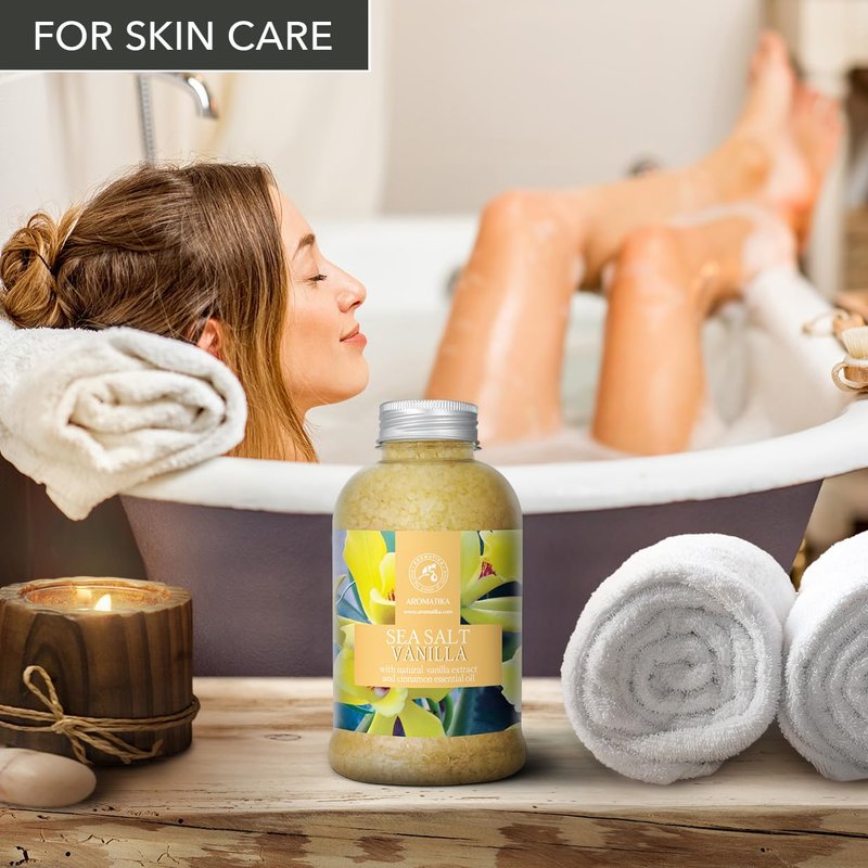 - A BATH WITH FRAGRANT salt with natural vanilla and cinnamon essential oil will make one feel revived and relax after a hard day.