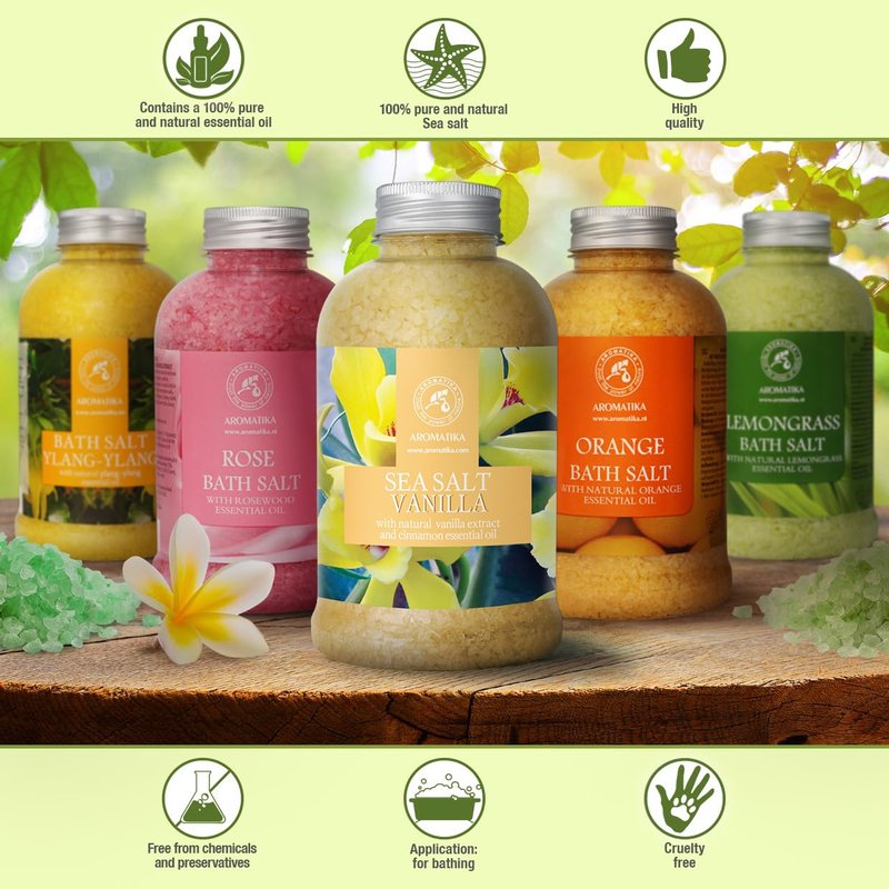 - Fill yourself with a good mood and well-being using aroma bath salts with natural essential oils!
