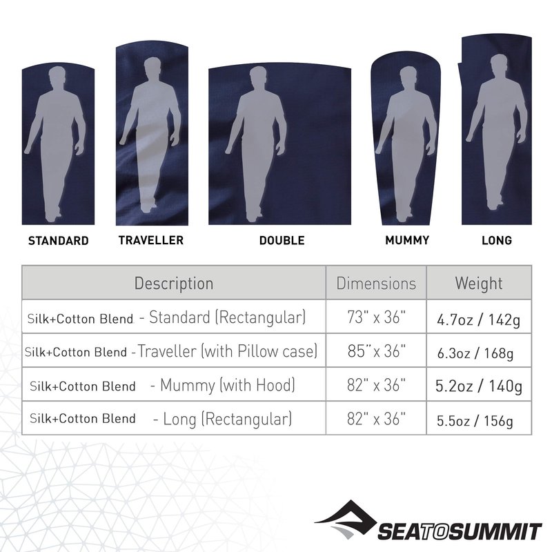 Sea to Summit Silk-Cotton Blend Travel and Sleeping Bag Liner, Rectangular (73x36 inches)