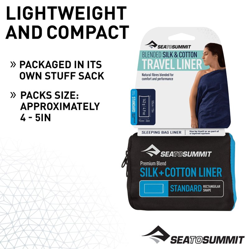 - Lightweight and compact silk-cotton blend sleeping bag liner for backpacking, camping, and travel