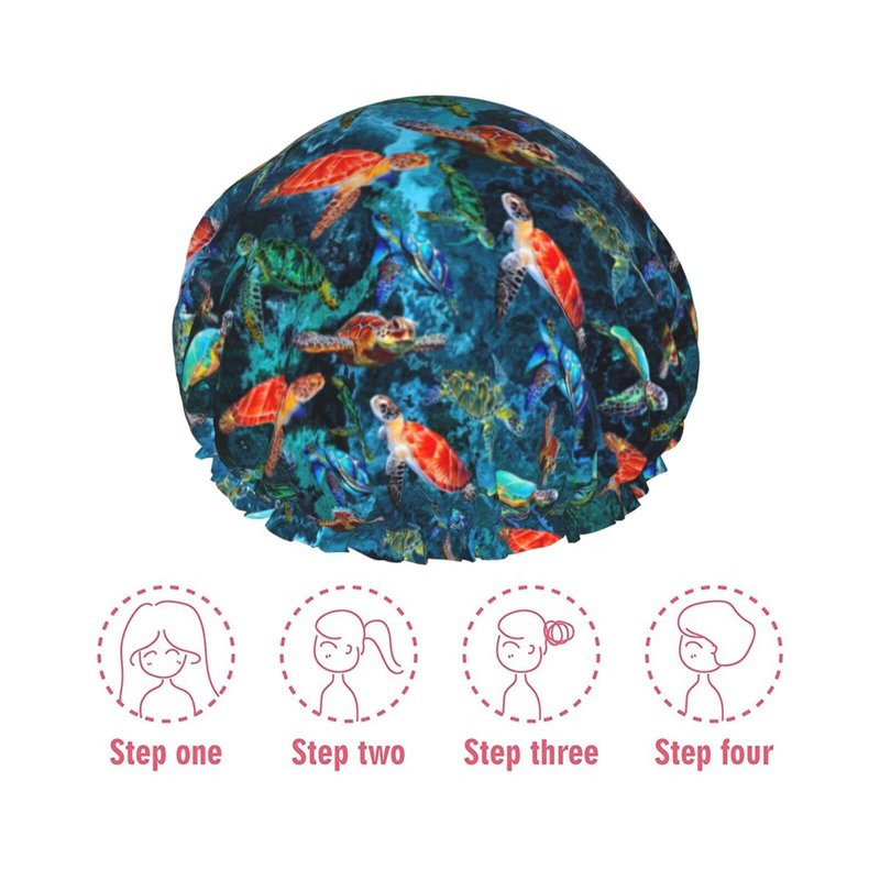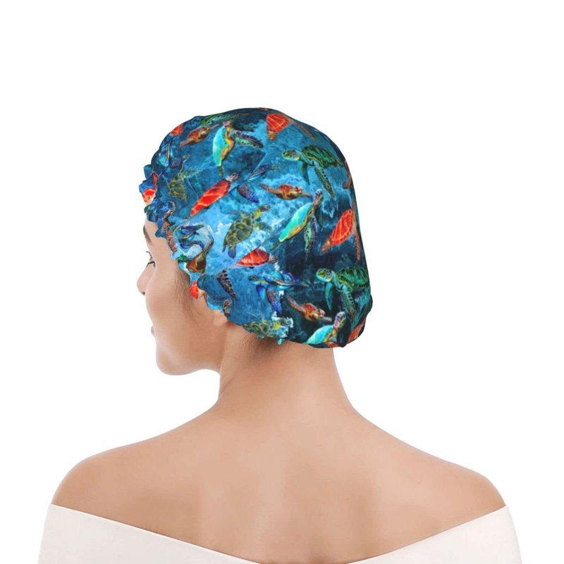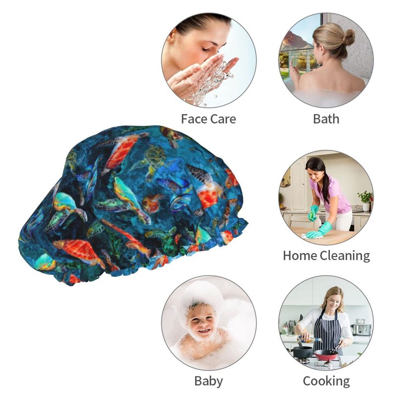 Sea Turtle Shower Cap For Women Adjustable Double Waterproof Layers Bathing Bath Cap Hair Protection Reusable Ladies Spa Salon Shower Hat