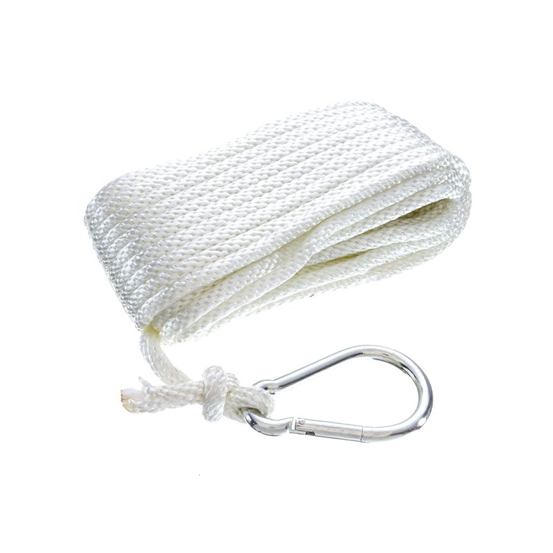 Seachoice Anchor Line Rope, Braided Nylon, White, Spring Hook, 3/16 In. X 100 Ft.