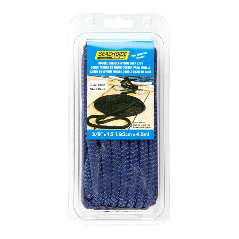 SEACHOICE Double-Braid Nylon Dock Line 3/8" x 15' 39831 Navy