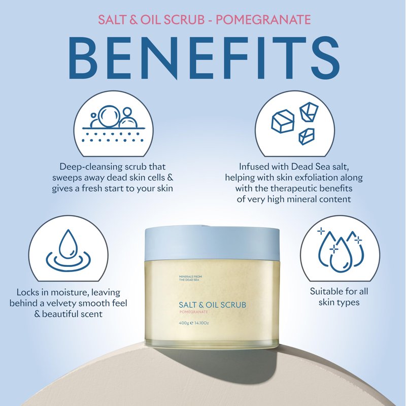SEACRET Body Scrub - Salt & Oil Body Exfoliator with Dead Sea Minerals and Essential Oils, Pomegranate Scent 14.1 FL.OZ.