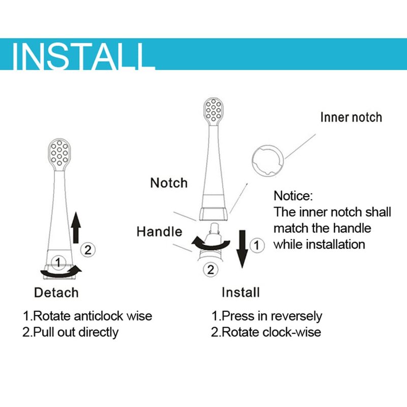 - Easy to Replace - These SEAGO toothbrush replacement heads kids have a Slim design, comfortable brushing feeling. When it's needed, just twist and remove the old SEAGO kids toothbrush replacement heads, then install the new toothbrush head, twist, and lock for a quiet, it's quick and easy to change sonic toothbrush heads replacement.