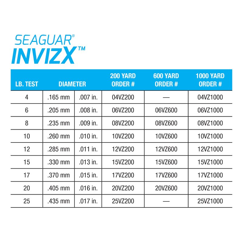 - Seaguar Invizx 100% Fluorocarbon 1000 Yard Fishing Line (20-Pound)