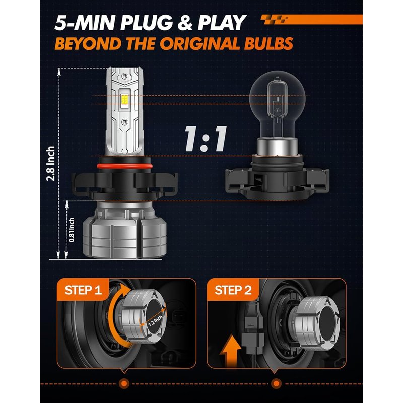 - Error-free for 99% of Vehicles: Canbus-ready, non-polarity, fit for 99% of vehicle systems. Compatible with 5202/5201/PS19W/PS24W, they can be used as fog lights or daytime running lights for your truck. Please check your owner's manual or the original bulb’s part number to confirm the model