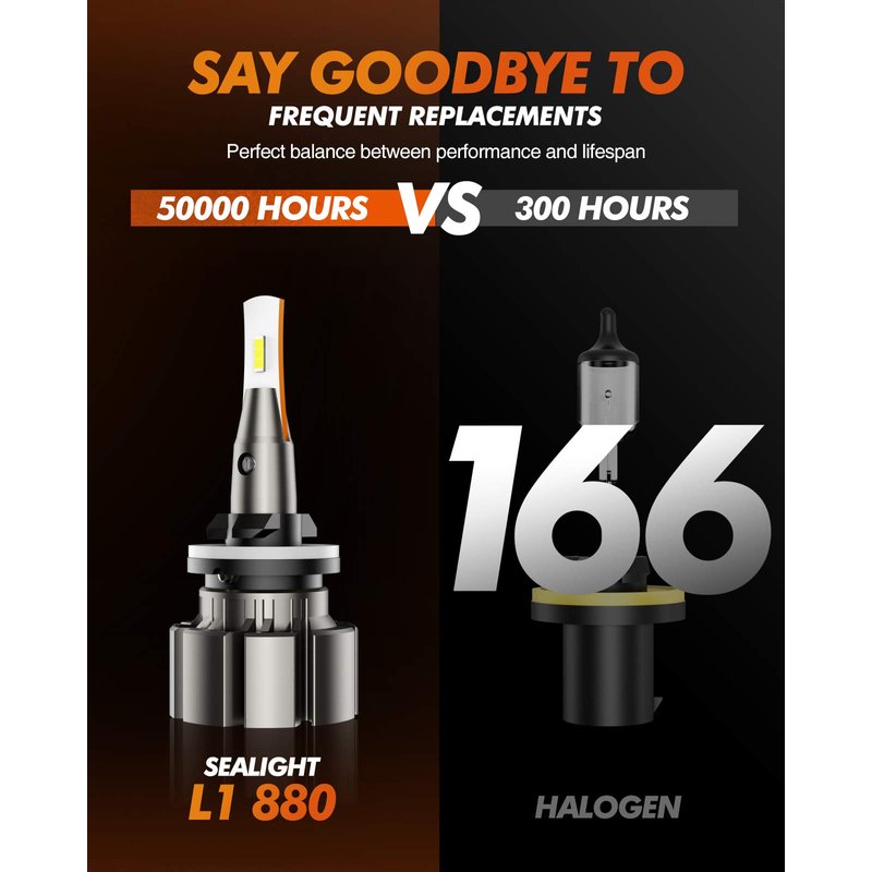 - Over 50000 hours lifespan: Aviation grade aluminum alloy body and unique sunflower cooling base dissipate the heat generated by LED chips quickly and effectively . It ensures SEALIGHT 880 led fog light bulb works stably and continuously up to 4 years