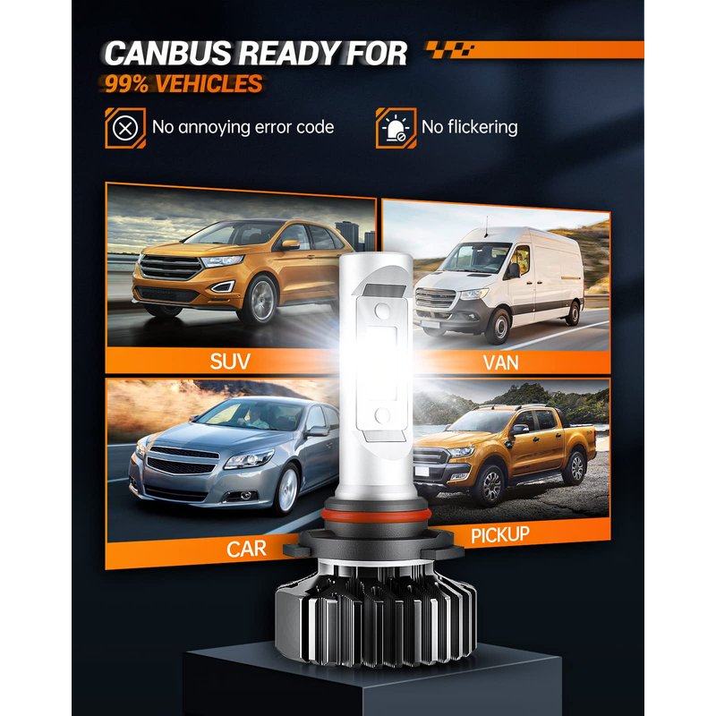 - 50000 Hours Lifespan: High efficiency cooling system separates the power supply and the bulbs body, increaseing more cooling efficiency and extending service life up to 7 years, which is 7 times of 9005 halogen bulbs