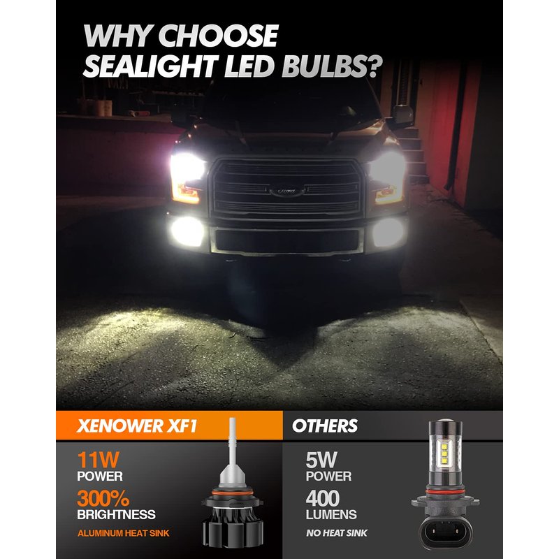SEALIGHT H10 9145 9140 LED Fog Light Bulbs or DRL, 400% Super Brighter, 6500K Cool White, 6000 Lumens Per Pair, Fog Lights Led DRL Bulbs Replacement for Cars, Plug and Play, IP67 Design