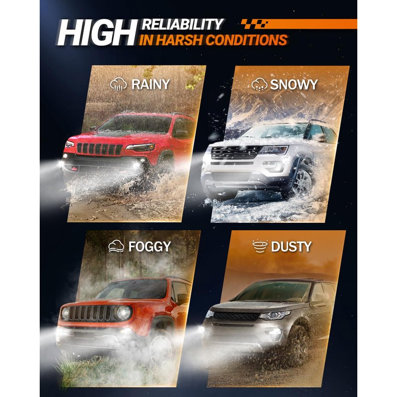 - 【50,000 HOURS ┃ MORE DURABLE】 Equipped with military-grade aluminum material (IP68 Waterproof), Ultra-thin Cylinder Conducts Heat Dissipation Technologies. 2024 Newest fog lights Undergo rigorous testing processes, including High temperature/Water-proof/Vibration testing to simulate various real-world conditions, ensuring a lifespan of up to 20 years.