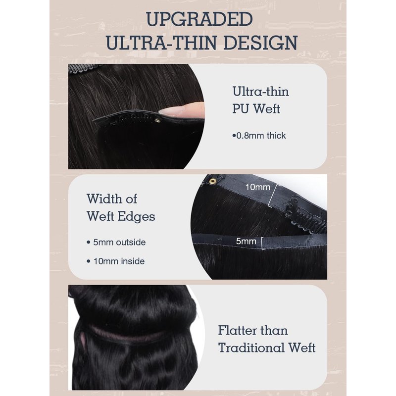 - Seamless Clip-In Hair Extensions: Our seamless clip ins real human hair are crafted with ultra-thin 0.8mm PU weft for ultimate seamlessness and breathability, featuring a 0.5cm wide adhesive for secure attachment, providing a seamless blend with your natural hair.