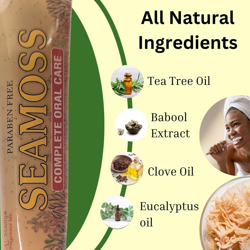 Seamoss Toothpaste with Clove, Tea-Tree, Neem, Babool, and Eucalyptus Oils - Paraben Free & Refreshing Oral Care for Sensitive Teeth - Halal - Pack of 5