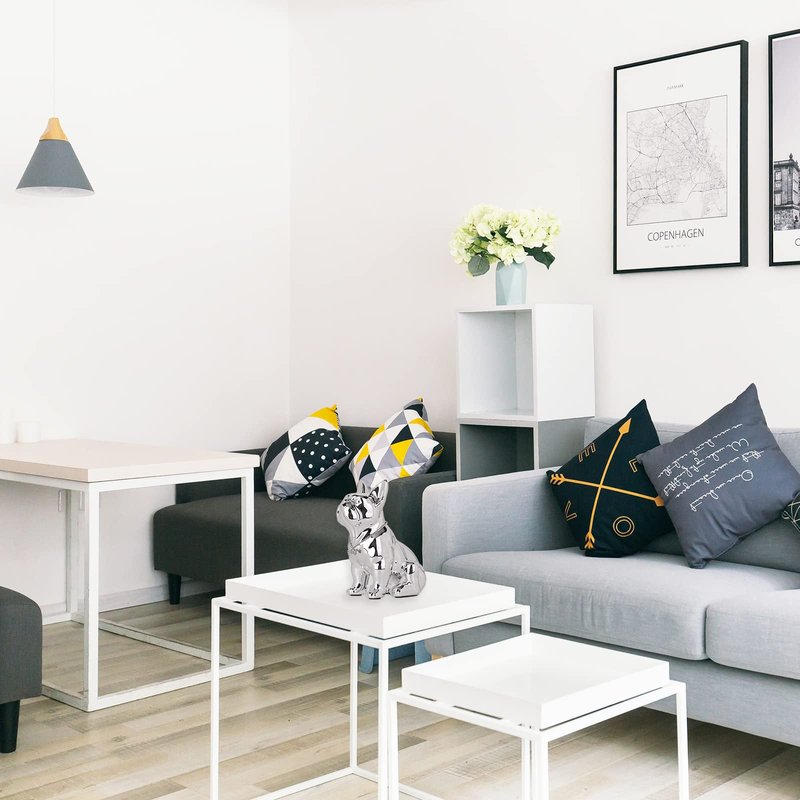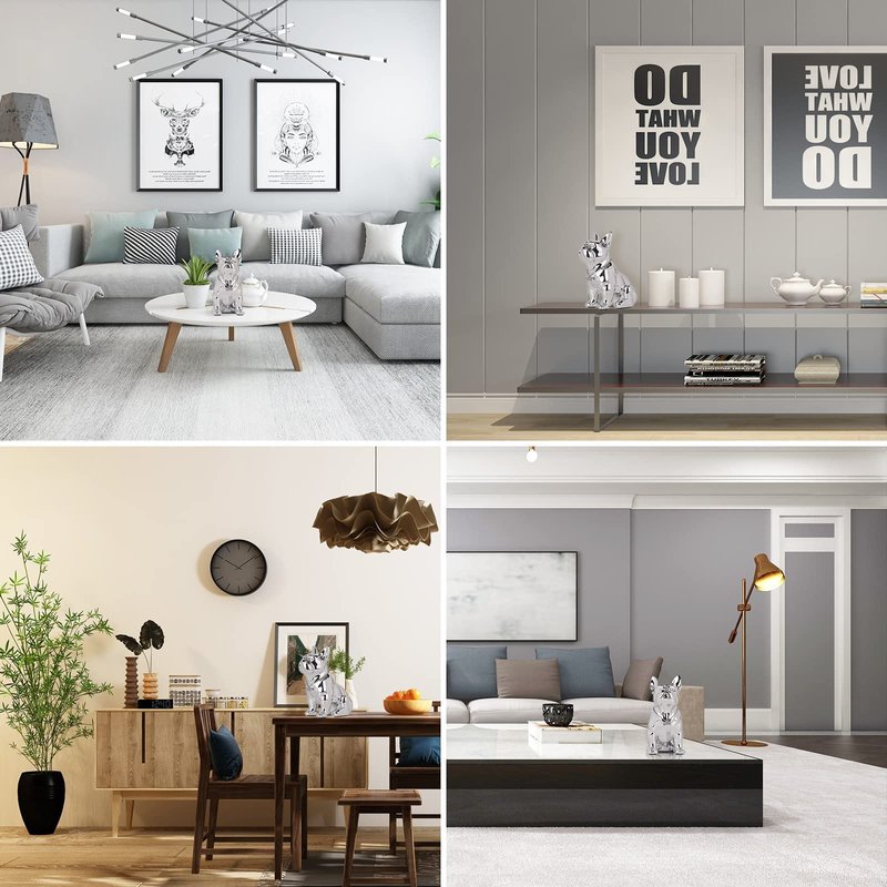 Elevate your interior design with this elegant French Bulldog resin statue, a symbol of sophistication and contemporary craftsmanship. Measuring at a compact 7.48*4.33*9.05in (19*11*23cm) for the small option and a more substantial 10.6*5.9*12.2in (27*15*31cm) for the large, this French Bulldog resin statue is designed to complement a diverse range of spaces with ease, suitable for personalizing an office or adding elegance to a living room. Each piece is intricately designed to reflect the French Bulldog's iconic charm, with a glossy, electroplated silver finish that adds a lustrous touch to any room. The inclusion of a tasteful jewel necklace accessory on the bulldog offers a unique aesthetic that is sure to spark conversation and admiration. Crafted from high-quality resin, this statue is not only visually striking but also durable and resilient against wear. It stands sturdily on any flat surface, with a well-balanced base that prevents tipping. Maintenance is straightforward, requiring only a soft brush or cloth for dusting to keep it looking pristine. This item is not just a mere decoration but also serves as an ideal gift for a myriad of occasions. Whether it's a housewarming, anniversary, or a personal treat to uplift one's spirits, this French Bulldog statue is a versatile choice that promises to delight. For longevity, it is advised to place the statue in areas away from excessive light and humidity to prevent any potential damage. With proper care, this exquisite piece will maintain its beauty and function for years to come, making it a worthwhile addition to any collection.