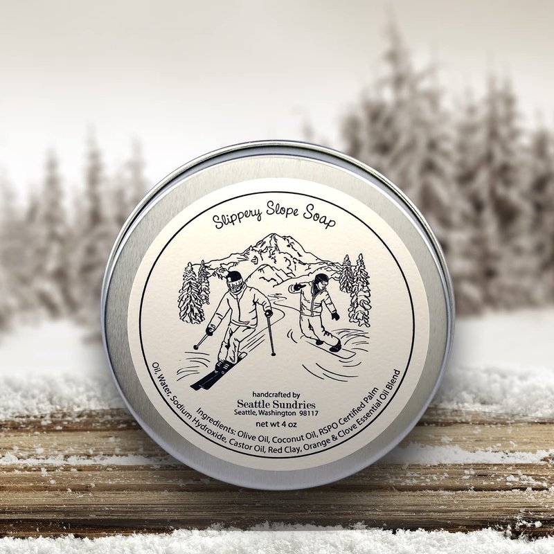 - Slippery Slope Soap for Kids & Adults - with sweet orange & spicy clove essential oils. The refereshingly spicy citrus scent blend makes it a favorite after-ski bath soap bar for winter snow sport lovers.