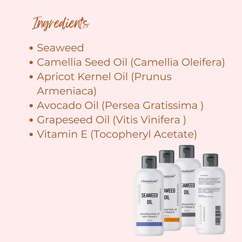 - Seaweed helps your skin appear more youthful, revealing moisturized, firmer looking skin. Never feels greasy. Made with light, fast absorbing oils.