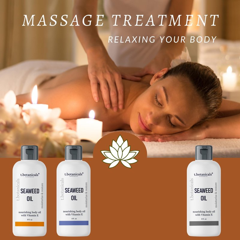 - Seaweed body oil is rich in antioxidants and promotes collagen production that protects the skin from early signs of aging. The anti-aging properties also plump up the skin and smoothen fine lines resulting in glowing and youthful-looking skin.