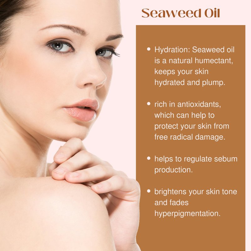 - Seaweed body oil is rich in antioxidants and promotes collagen production that protects the skin from early signs of aging. The anti-aging properties also plump up the skin and smoothen fine lines resulting in glowing and youthful-looking skin.