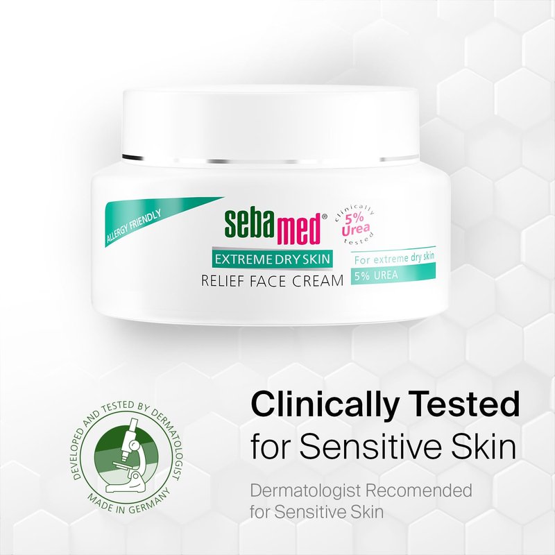 - NO MORE DRYNESS: The Extreme Dry Skin Relief Face Cream 5% Urea is a gentle face cream that rejuvenates your facial skin, providing intense moisturizing effects to rapidly relieve flakiness, tightness, itchiness and other uncomfortable symptoms of dry skin.