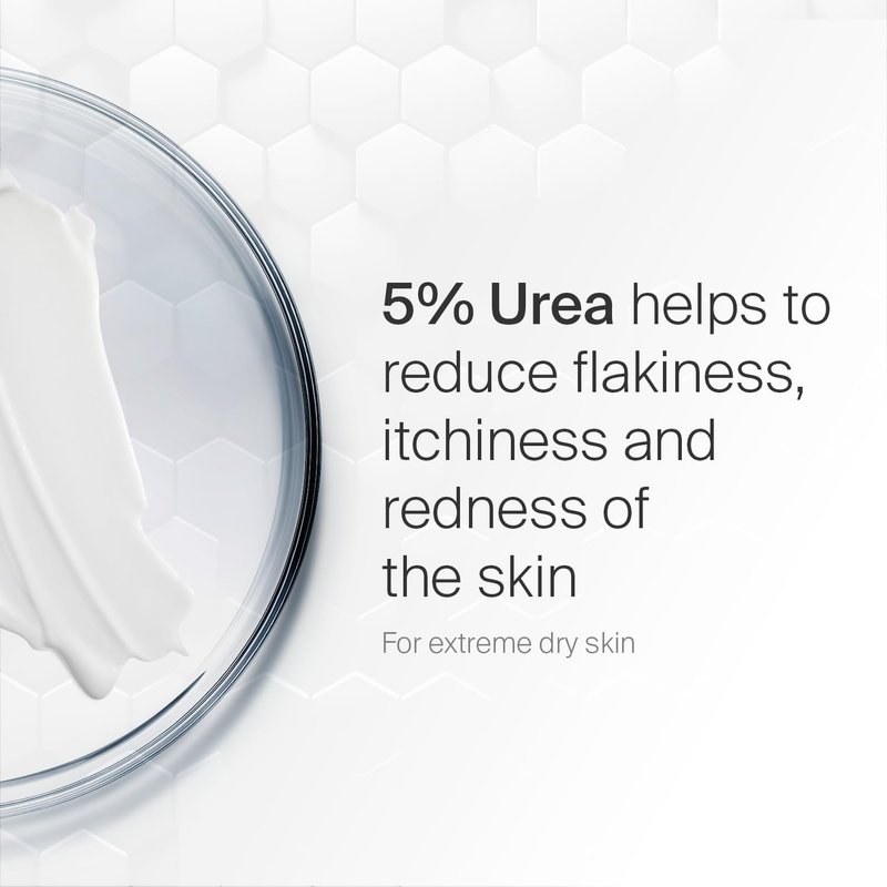 - 10% UREA: Formulated with a urea concentration of 10% to instantly alleviate dry skin symptoms, such as itchiness, flakiness, and irritation. Urea is a unique ingredient that both moisturizes and exfoliates.