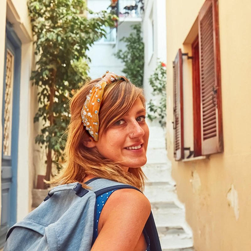 - [Package include] 1pcs khaki knotted pearl headband, top knot headband for women. Beautiful headwear will enhance your elegance.