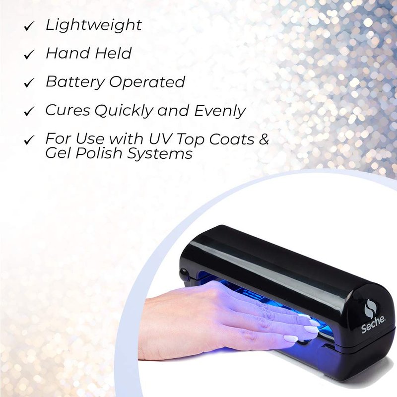 - EASY-TO-USE WITH FASTER RESULTS: No need to get panicked and confused when using UV nail dryers as Seche designed Ultra-V to be more consumer-friendly. Perfect for your manicure routine, this nail dryer is devised not to intimidate beginners just starting out in drying UV coats on nails! Just apply your gel coating, cure nails under the UV lights, and simply wait.