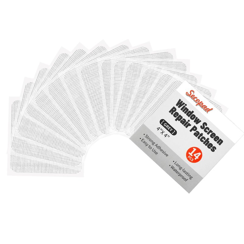 Secopad 14PCS Screen Patch Repair Kit, Grey/Black Window Screen Repair Kit for Mesh Window Screen Door Repair, Strong Adhesive Fiberglass Screen Repair Tape, 4" x 4"