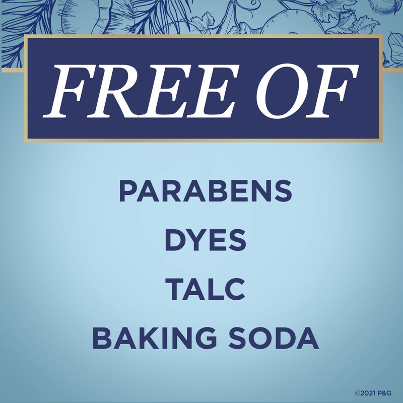 - ALUMINUM FREE - This special formulation is free of aluminum salts, parabens, dyes, and talc