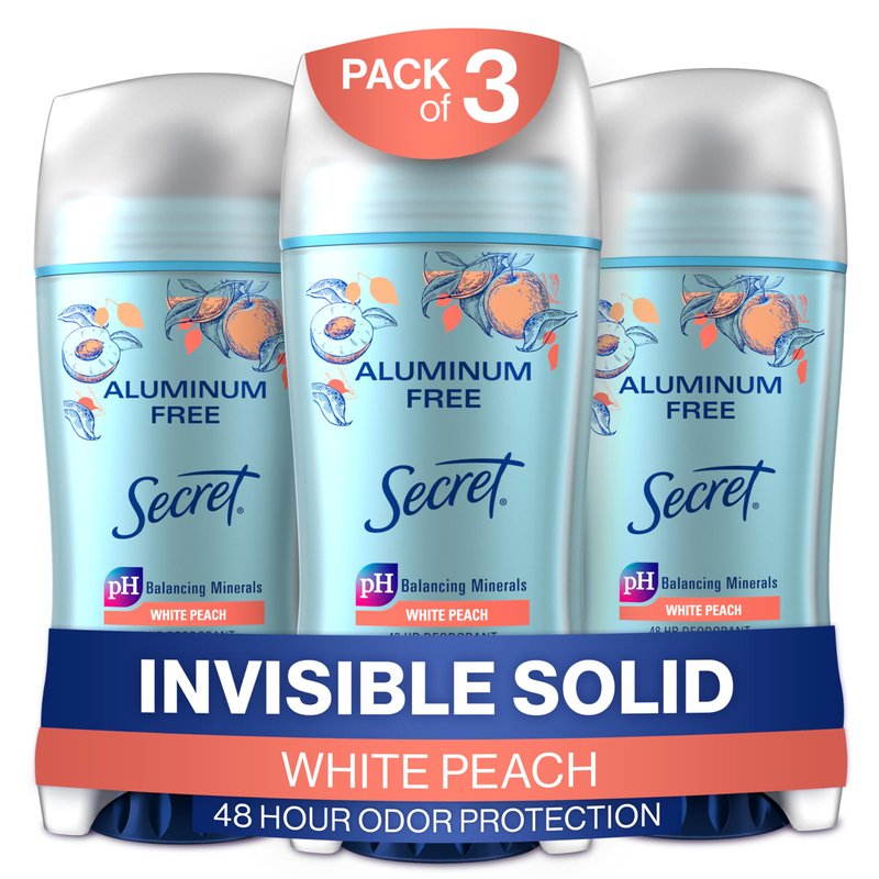 Secret Aluminum Free Deodorant for Women, White Peach, 2.4oz (Pack of 3)