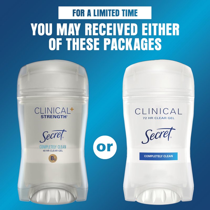 Secret Clinical Strength Deodorant and Antiperspirant for Women Clear Gel Completely Clean 2.6 Oz