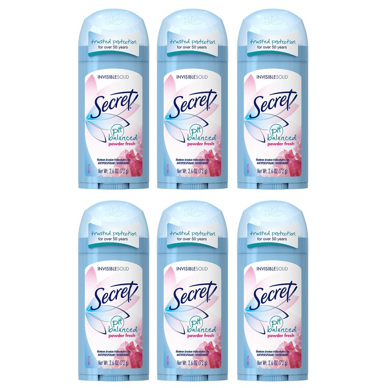 Secret Invisible Solid Antiperspirant and Deodorant, Powder Fresh, 2.6 Ounce (Pack of 6)