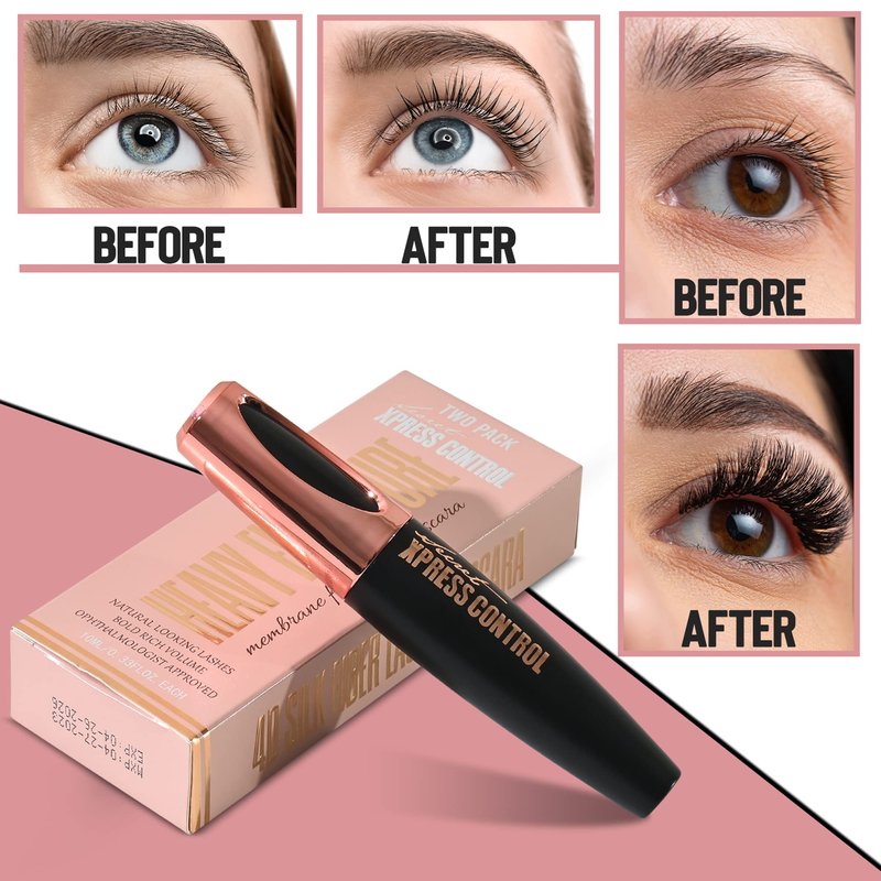 Secret Xpress Control 4D Silk Fiber Lash Mascara, Lengthening and Thick, Long Lasting, Waterproof & Smudge-Proof, All Day Exquisitely Full, Long, Thick, Smudge-Proof Eyelashes (2 Pack)