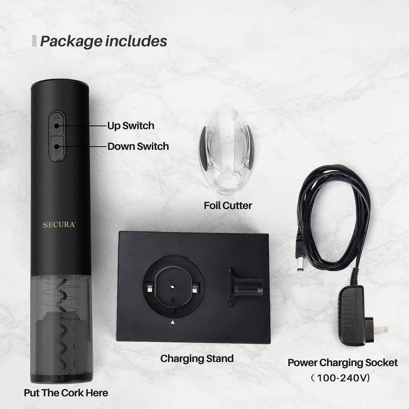 - Save Footprint - Secura electric wine bottle opener small enough to store away when not in use, you can set up the charging base next to your wine fridge, storage rack, credenza, etc.