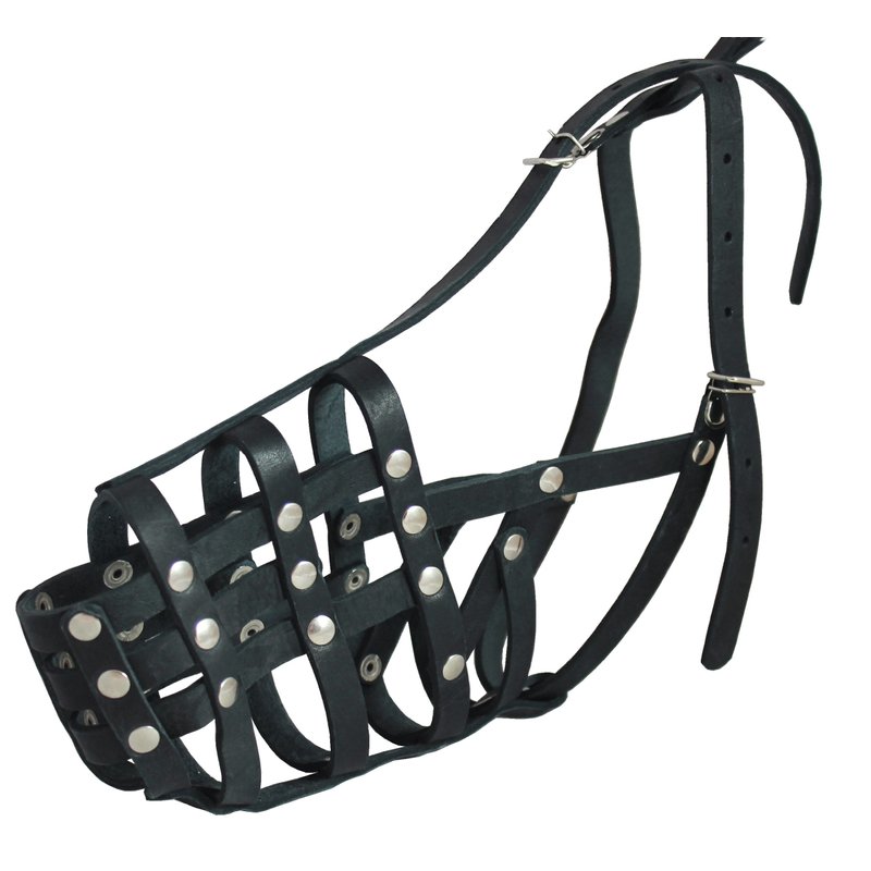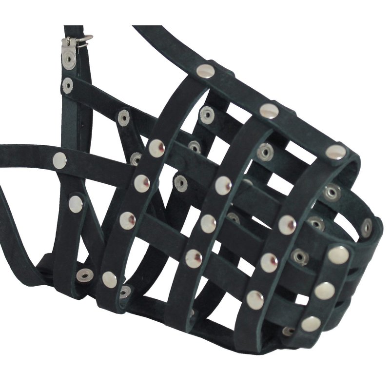 Secure Genuine Leather Mesh Dog Basket Muzzle - German Shepherd Female, Doberman, (Circumference 12", Snout Length 4.5")