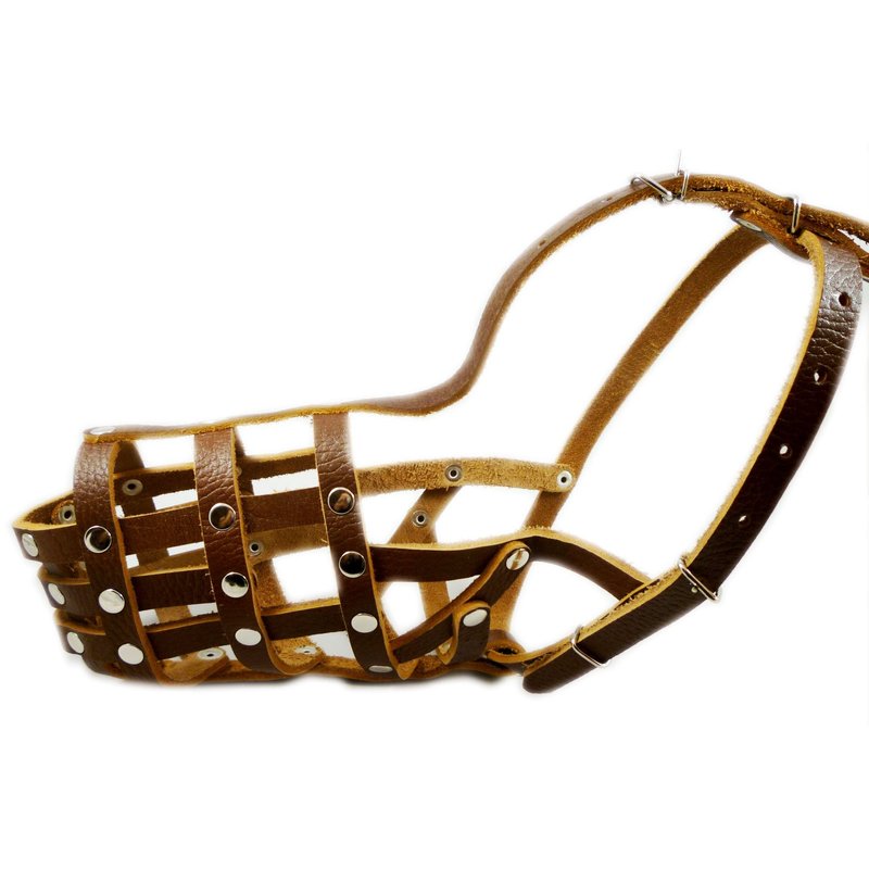 Secure Leather Mesh Basket Dog Muzzle #13 Brown - German Shepherd, Labrador, Husky, Retriever (Circumference 12.25", Snout Length 4.75")