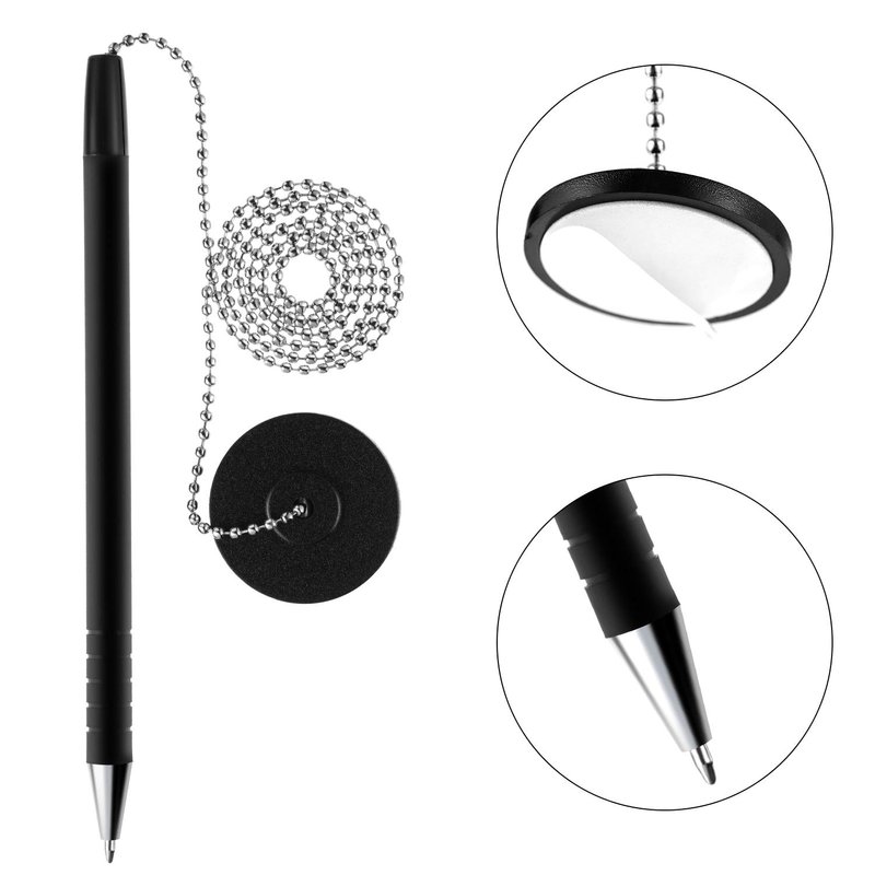 - Size of chain: the pen chain can be extended to 23 inches at most, long enough and proper size for most tables when you write around with the pen, the round black pen holder can be adhesive to smooth surfaces, not easy to fall off