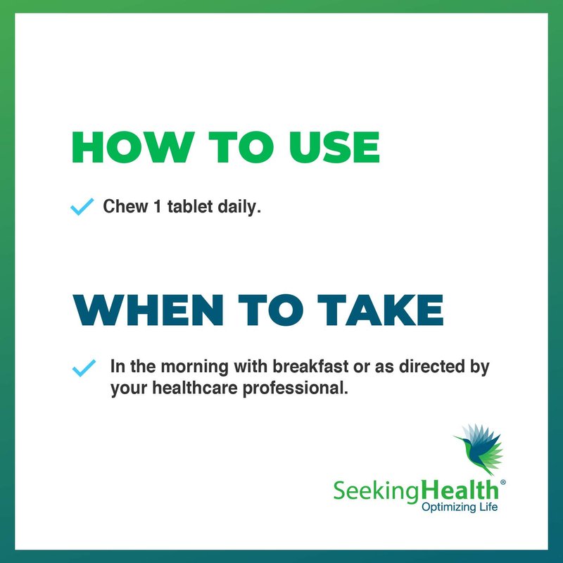 Seeking Health Optimal Iron Chewable provides a gentle form of iron combined with Vitamin C to aid the body’s metabolism of iron. Our well-tolerated iron supplement combines with Vitamin C during digestion to create an easily absorbed compound. Iron supports healthy muscles, red blood cells, and metabolism. Iron also helps maintain healthy connective tissue and normal hormone function.* Each chewable tablet contains 10 mg of absorbable iron and 25 mg of Vitamin C. Suitable for vegetarians, Optimal Iron Chewable is free from milk, egg, fish, shellfish, tree nuts, peanuts, wheat, and artificial colors and flavors. To use, chew 1 tablet daily in the morning with breakfast or as directed by your healthcare professional. Seeking Health provides quality vitamin supplements because we believe that, to remain healthy, our bodies need pure, well-formulated nutrients. Seeking Health's founder Dr. Ben Lynch believes that good health starts with the genes. With a research-backed educational foundation and bioavailable nutrients in easy-to-use formulas, Seeking Health helps you live your optimal life now. *These statements have not been evaluated by the Food and Drug Administration. This product is not intended to diagnose, treat, cure, or prevent any disease.
